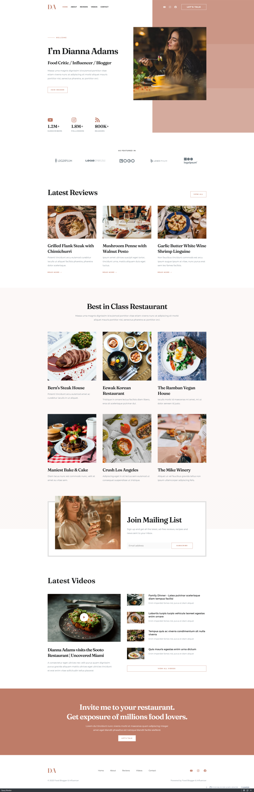 Are you a food blogger, an influencer, or both? Want to build a website and become an authority in your niche? We’ve got you covered with this Food Blogger & Influencer website template.